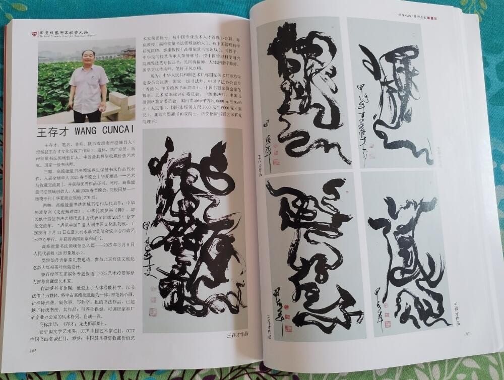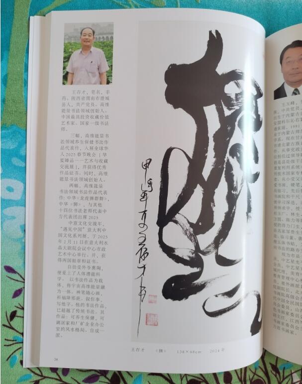 三幅,高维能量书法领域养生保健书法作品代表作,入展全球华人2025春节晚会[华夏臻品一一艺术与收藏交流展],并获得优秀作品证书。同时,高维能量书法领域创始人,入编2025春节晚会,同根同梦一一楷模专刊[华夏商业领袖] 270页。