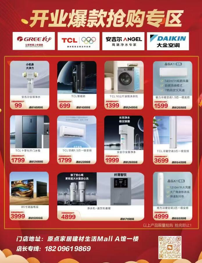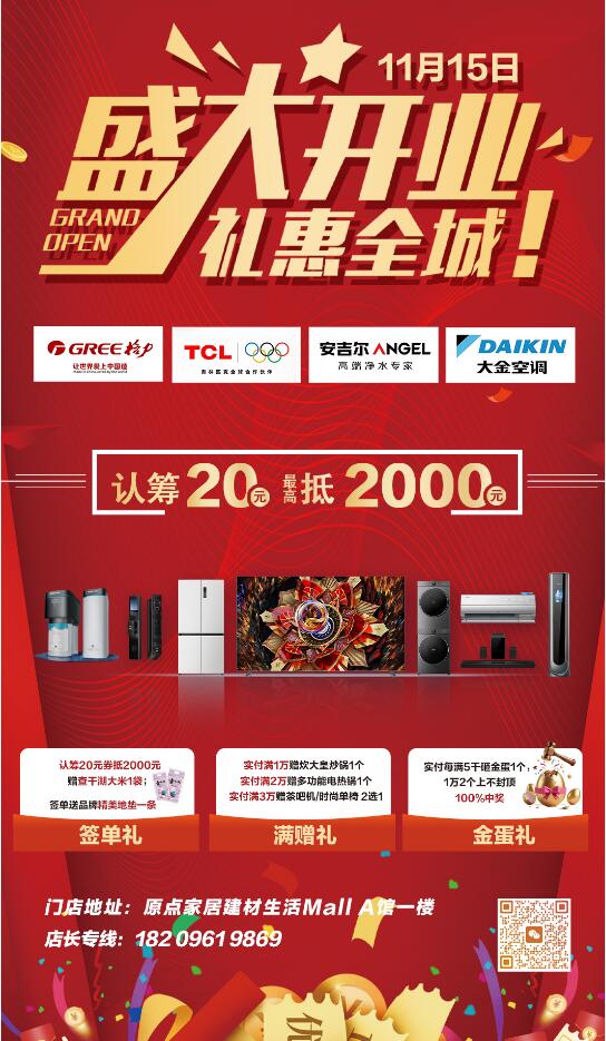 原点京东家电双十一巅峰狂欢季,全场家电系列享受企业补贴直降不止8折,单件最高可优惠2000元,指定品牌购买还可以抽大奖,多重补贴限时抄底价,有意愿撸羊毛的朋友们赶快飞到西咸新区泾河新城原点建材家居综合馆一层东面京东家电旗舰店吧!