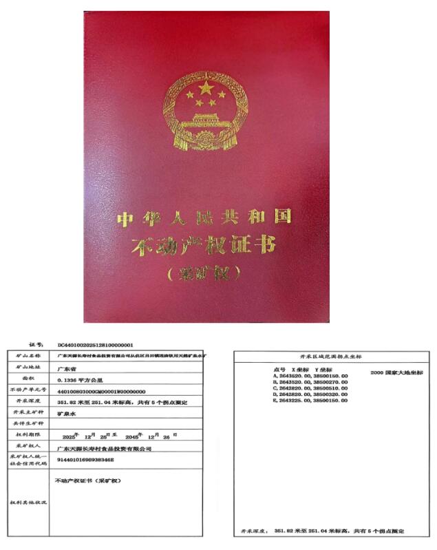 ■天源长寿村获得从化吕田优质矿泉水20年开采权