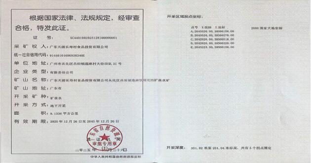 近日,广东本土知名水企天源长寿村从化水厂成功取得广州市从化区吕田镇莲麻村饮用天然矿泉水采矿权,为企业从化新厂筑牢优质水源保障根基。此次采矿权的获批,不仅是天源长寿村品牌发展的重要里程碑,更以响应广州市“百千万工程”号召为导向,在保障民生健康、助推乡村振兴、引领行业高质量发展等多个领域释放显著社会效益,为地方经济社会发展注入温暖动能。