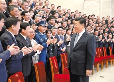 上午10时,习近平等来到京西宾馆会议楼前厅,全场响起热烈掌声。习近平等走到代表们中间,同大家亲切交流并合影留念。